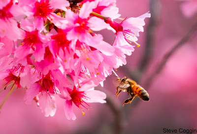 | A Honeybee pollinating East Asian Cherry. Rowan County, North Carolina. |